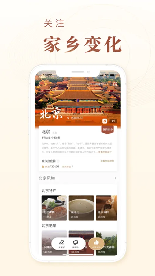 * 热门城市:这里以城市为维度聚合了风物内容,你可以在这里看到你的家乡或者你向往的城市为它点赞助力,让更多的人看到它。