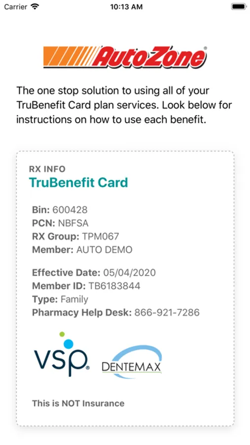 TruBenefit Card Screenshots