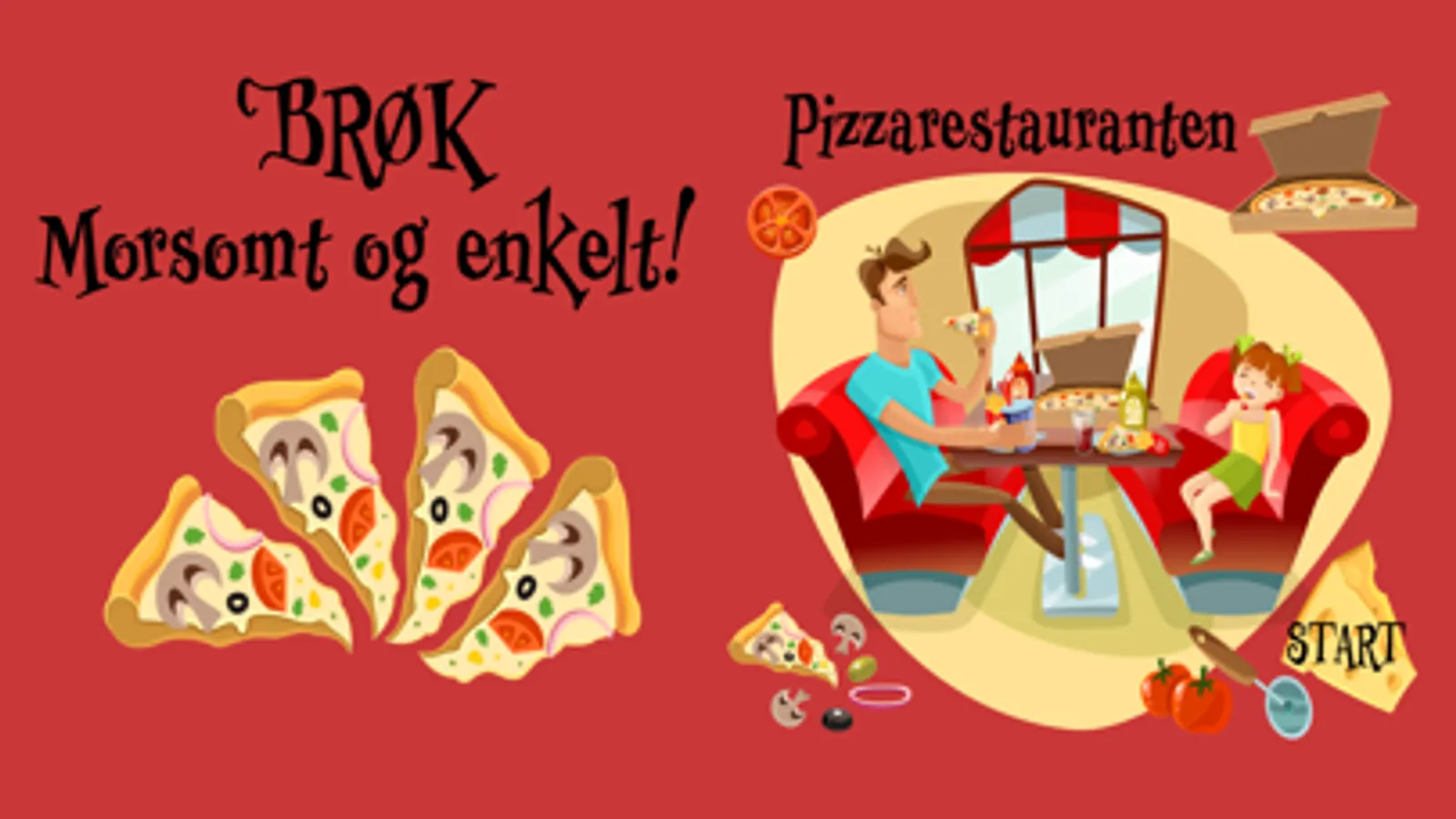 Bli med inn på pizzarestauranten! Her skal du servere alle gjestene i restauranten pizza. For å kunne servere gjestene, må du løse brøkoppgaven før du kan gi dem mat.