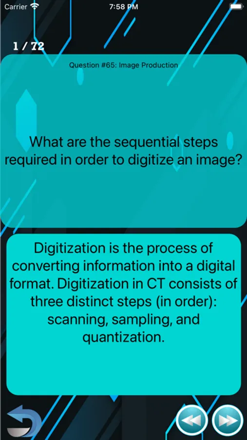 If your goal is to become a Computed tomography (CT) technologist, you need to earn American registry of radiologic technologist® (ARRT®) credentials in Computed Tomography (CT). The purpose of ARRT® certification and registration in CT is to recognize individuals who are qualified to perform the role of CT technologist. The education requirements to earn the credential to become a CT technologist include being ARRT® certified, meeting the structured education requirement, and meeting the clinical experience. In the structure education requirement is where an applicant will master the discipline specific knowledge and cognitive skills you will need to obtain your credential. This app will help you to strength your foundation by testing your knowledge with over 900 questions in the ARRT® registry format.