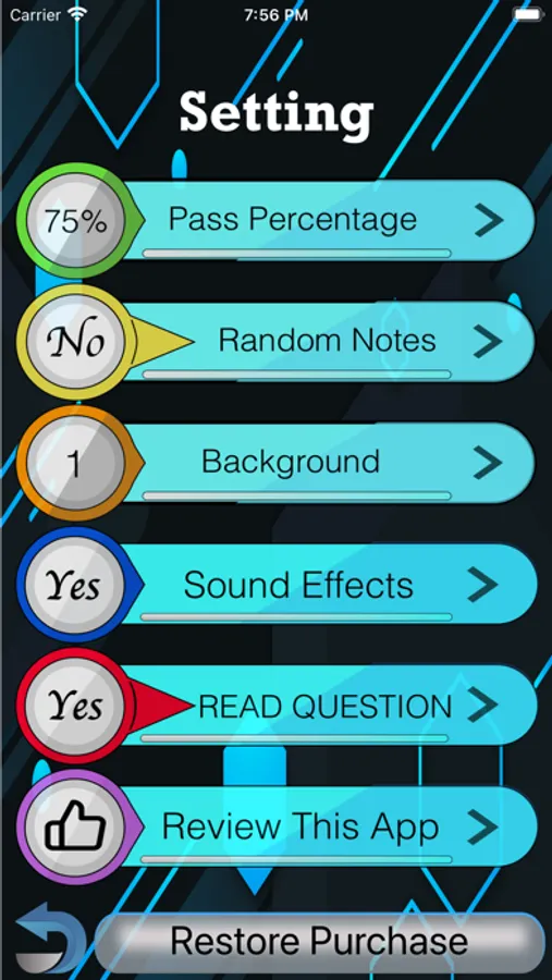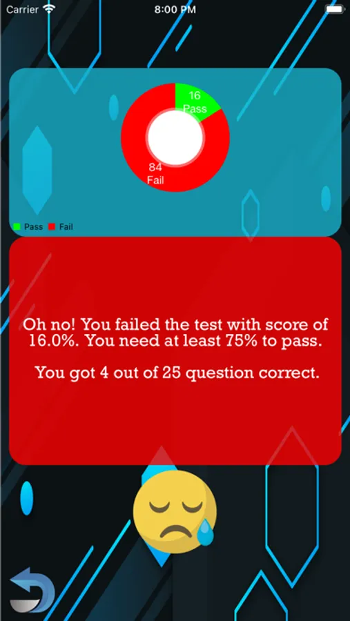 A Review Test question that allow user to go back and review the last test they took in each category to review the test.