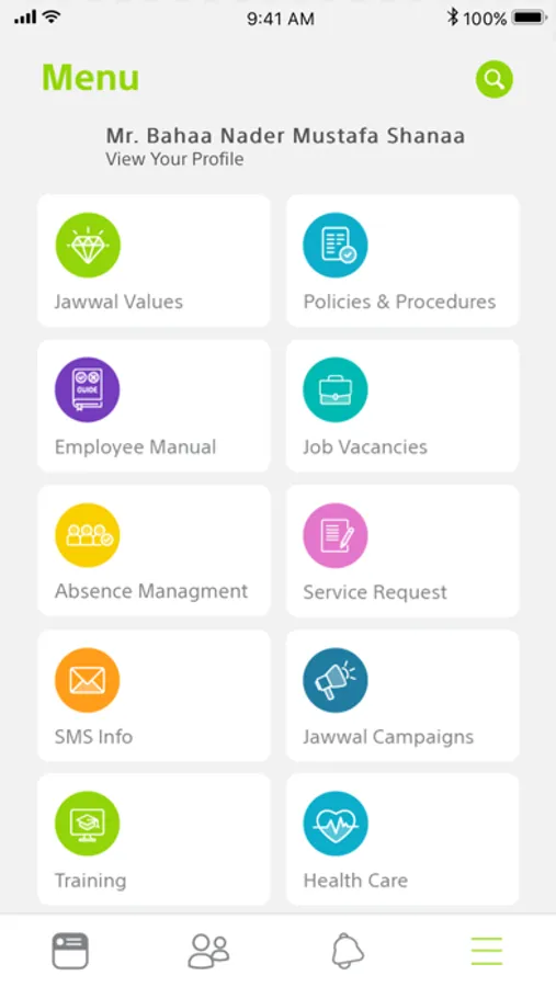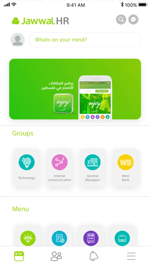 Jawwal develop Mobile application for public use, this application will enable users to request all internal services through their mobiles without any restrictions also will offer some services to people related to employment and company info.