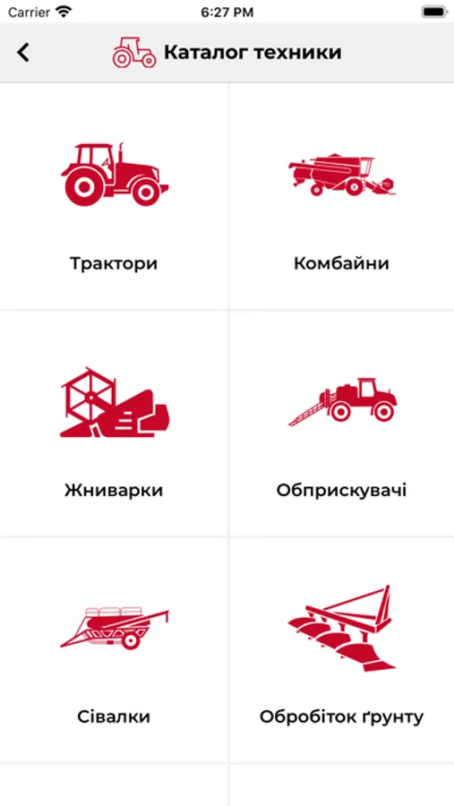 Кроме раздела сельхозтехники пользователю доступны следующие разделы: