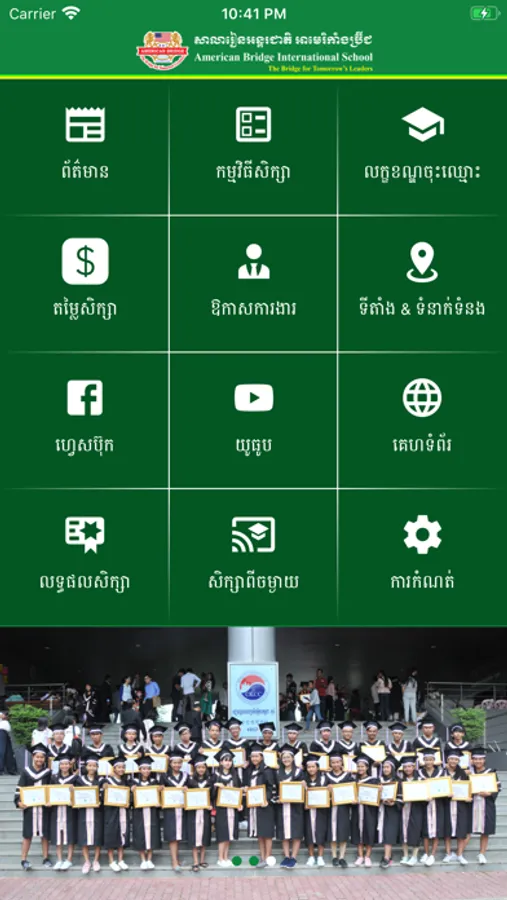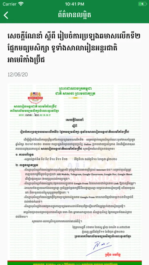 American Bridge International School, a private educational institution, is an acronym consisting of its core curriculum, Khmer programs both at school and online learning programs. American Bridge International Institute serves General Education from Grade 1 to Grade 12 that is designed and conducted in alignment with the Ministry of Education Youth and Sports' (MoEYS) curriculum and syllabus. In addition, we also provide our students with English and Computer classes including extra curricular such as Dancing, Karate, etc.