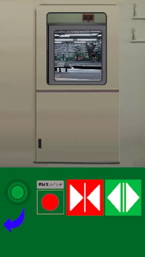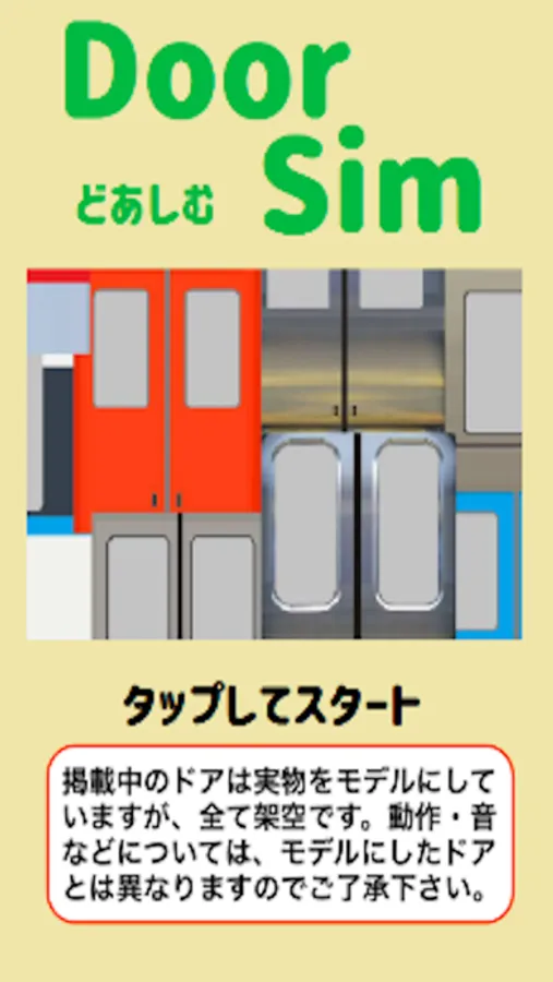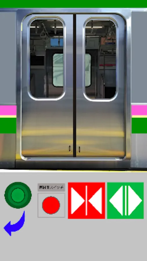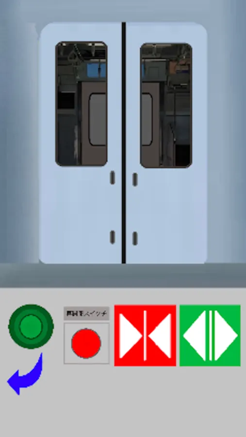 ドアボタンを押してドアを開閉しよう。閉まっている途中で再開閉ボタンを押すと、押している間だけ開きます。作品中のドアは実物をモデルにしていますが、実物とは挙動や音、配色等が異なりますのでご了承ください。