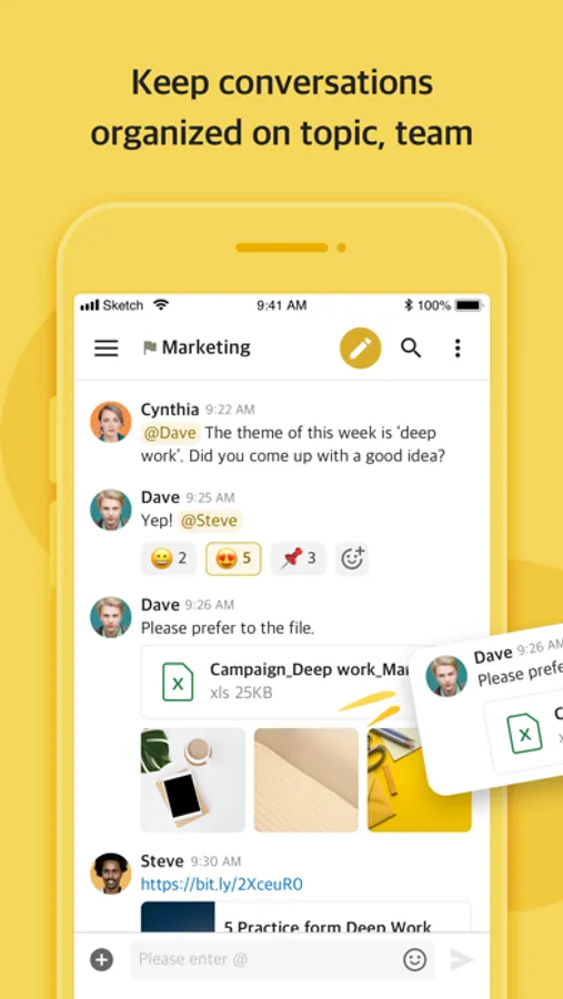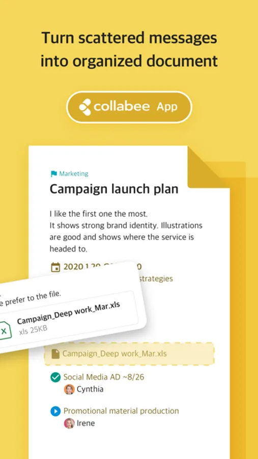 The main difference of Collabee Messenger is that messages are turned into documents on Collabee App with just a few click. You can select important messages and files, links and convert the conversation into note on Collabee App. Without loosing any messages and file, you can seamlessly collaborate with team.