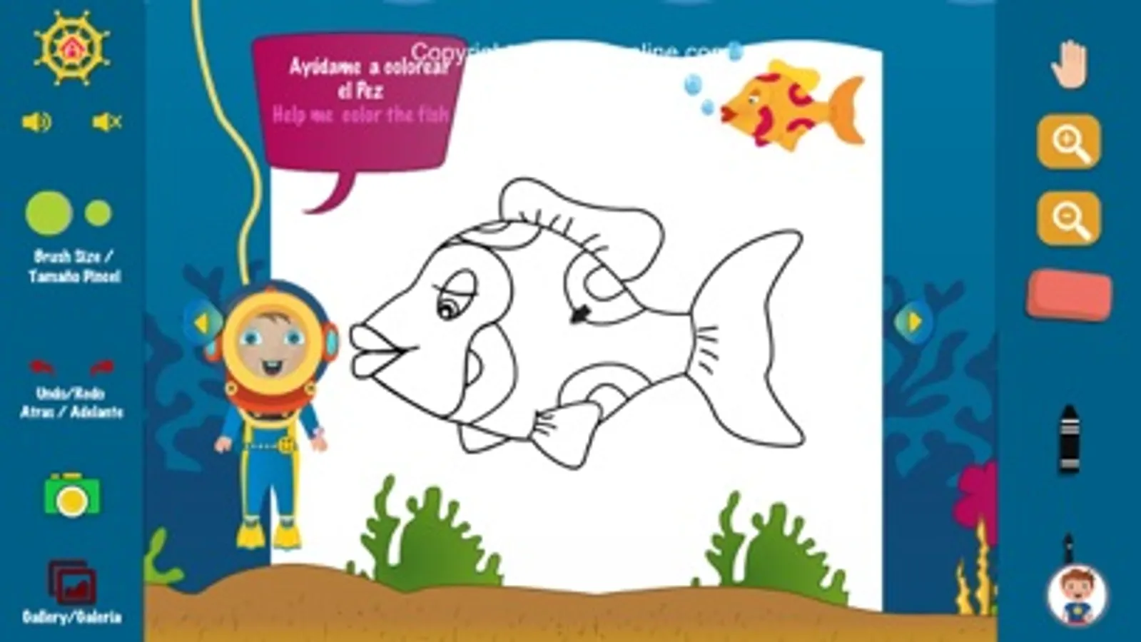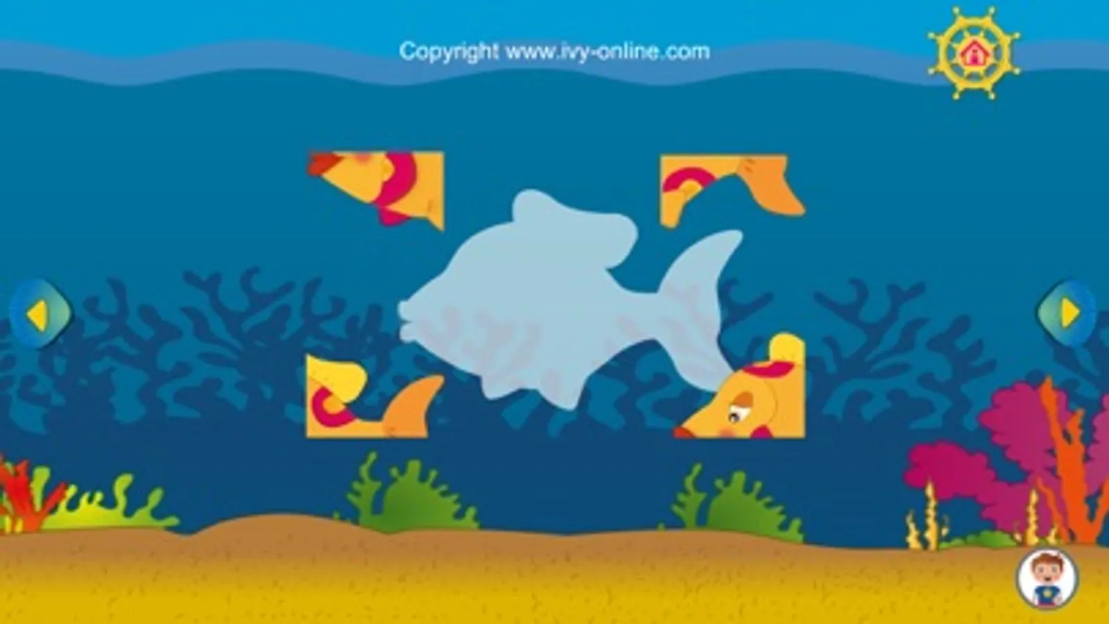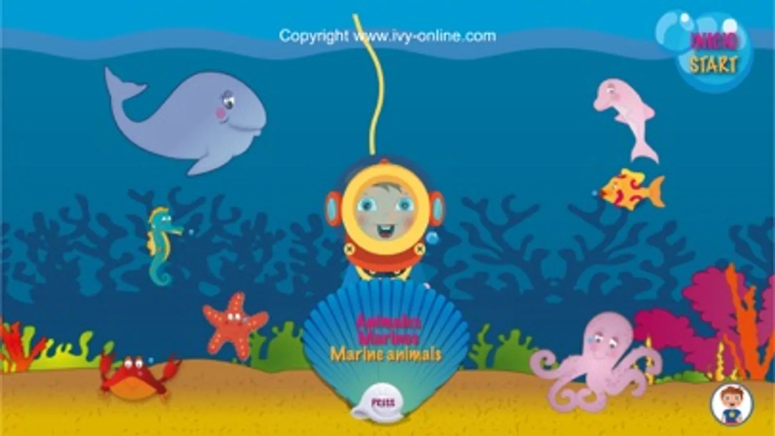 Press the start button and start learning and playing. Touch the screen, choose: fish, starfish, dolphin, octopus, seahorse, whale, crab, and have fun.
