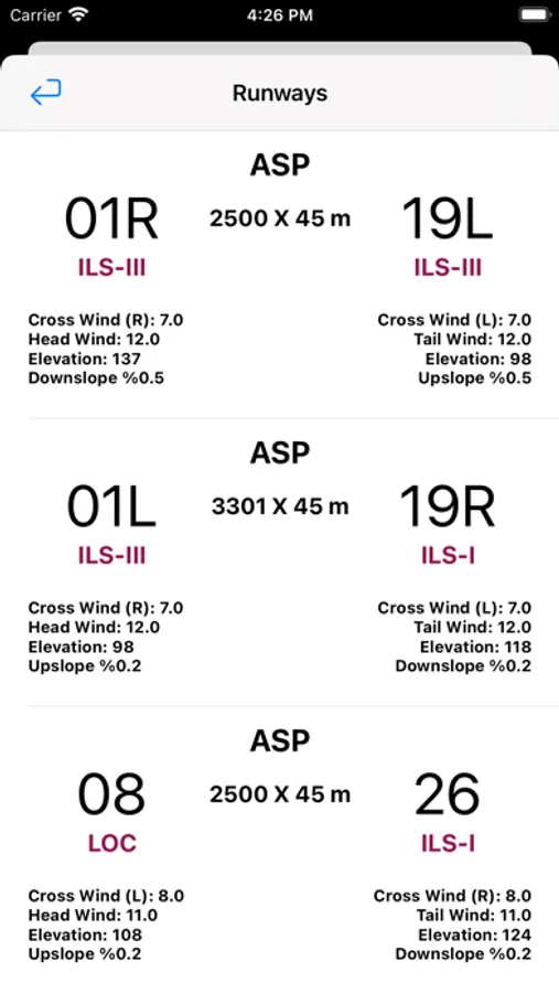 * Calculates Maximum & Minimum Cross wind values for each runway according to TAF & lets you know on briefing section
