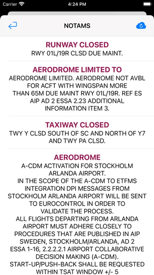 14- NOTAMS section gets the current NOTAMS and classifies it according to their specification to improve readability.