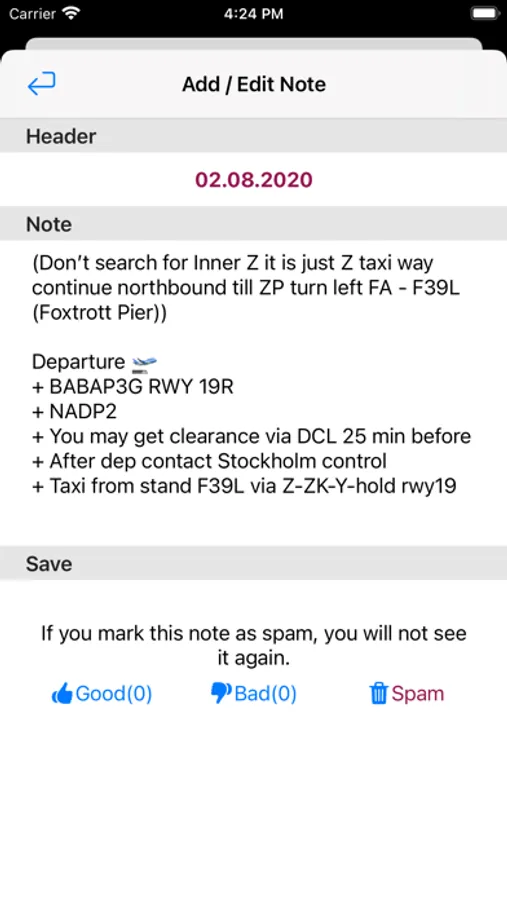 * You can share your airport notes, your experience with other aviators all around the world and read their notes & learn from their experiences as well. You can upvote or downvote for the notes according to their usefulness