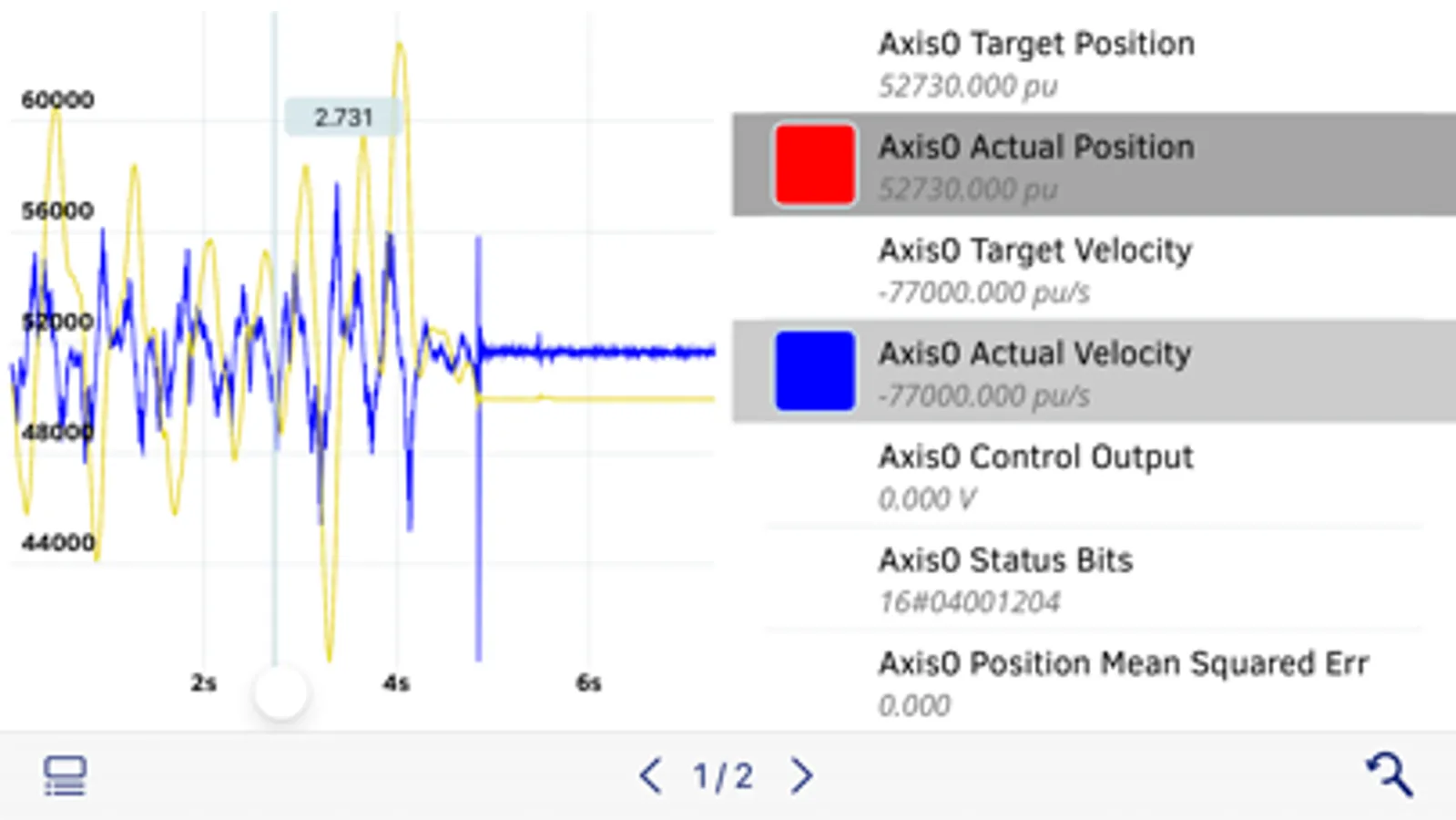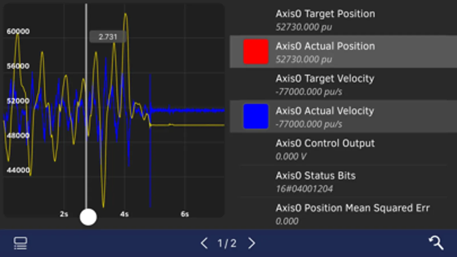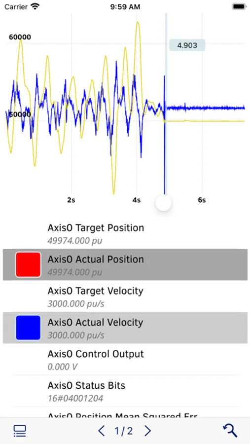 Not only can you zoom into the entire plot for more detail on both the vertical and horizontal axes using natural pinch gestures, but you can also vertically scale and offset individual scalegroups to separate them from and compare them to similar plot quantities. When you want to undo a scalegroup's individual zoom or vertical offset, it's just a tap away. Want to return the entire plot to its freshly-opened, un-zoomed state? That's just another tap away.
