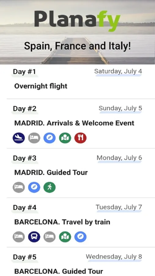 Every Tour Leader should use Planafy to organize their tours: create itinerary, automatically write reconfirmation emails, create daily schedule, organize optional activities, etc. Travelers will use this app to access daily events, access city free time suggestions and sign up for optional activities.