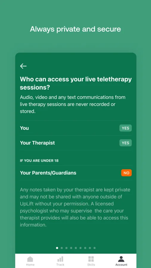 Our team of professional therapists uses an evidence-based, skills-focused approach that is personalized for each individual client. In between live sessions, our therapists provide a range of skills and exercises through our app, allowing you to continue to grow and create change on your own time.