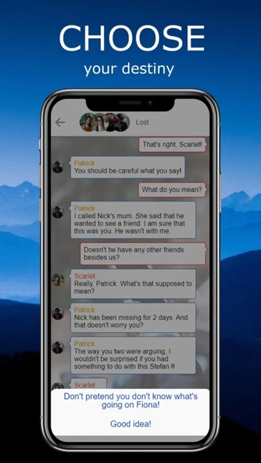 Fiona 's Secret is an interactive chat game. You chat through various chapters and experience an exciting story. Every decision you make will have consequences. Be careful, and become the director of your exciting adventure!