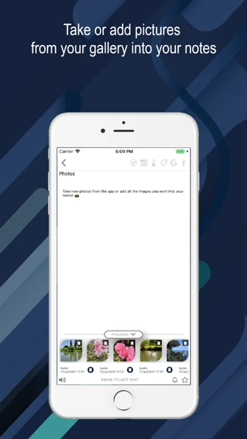 You can use Safe Notes as a digital notebook or diary and add pictures, taking them with camera or your gallery. You can keep notes of lectures, business meetings and interviews or if you need quickly transfer URLs, code snippets and email addresses.