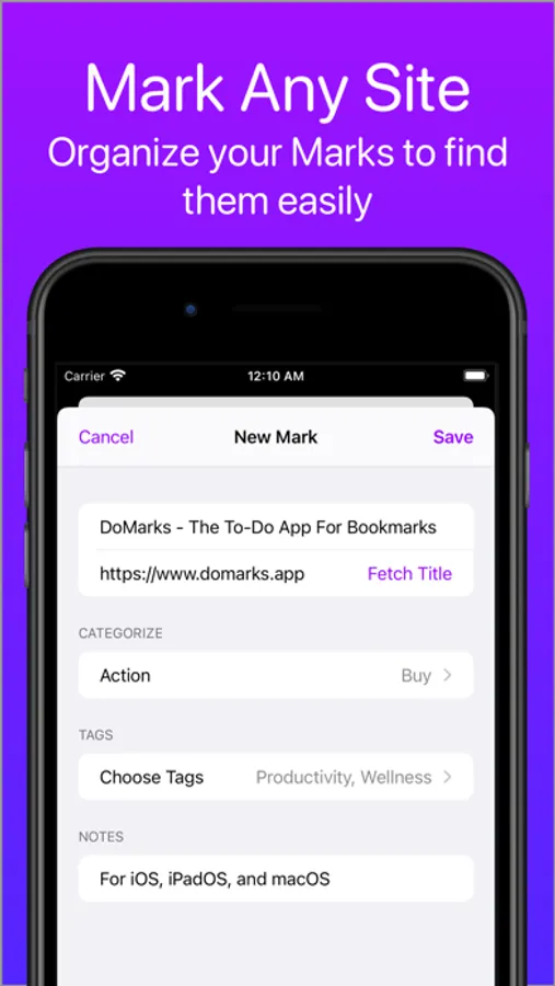 - Cross-platform. Marks automatic sync with iCloud. Access your Marks on any of your devices automatically!