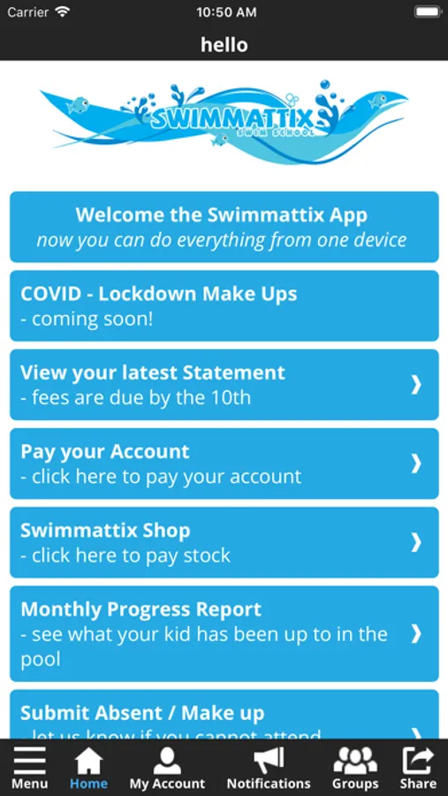 - assess your Swimmattix Parent Portal from our app. View your account, statement and latest account balances.