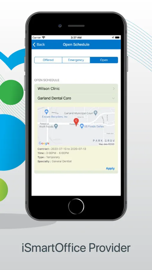 This application has 2 (two) account role providers and assistants, to manage their busy working schedules as well as easily communicate with other office staff and managers. iSmartOffice Provider also helps link providers and assistants with prospective employers.