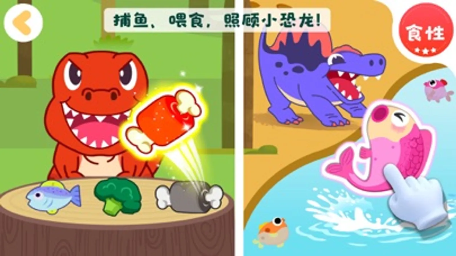 -霸王龙开始捕猎了!宝宝们,快指引伶盗龙急速狂奔,发挥它长跑健将的实力,躲避霸王龙!