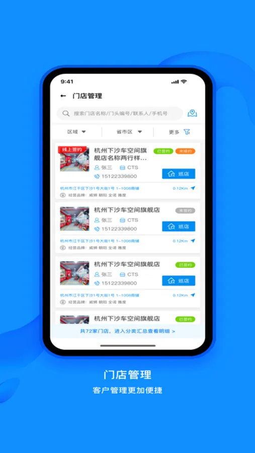 业务通是中策车空间倾力打造的轮胎销售管理云服务平台,贴合行业实际销售体系,有效协同,助力轮胎营销。完成门店签约,变更,解约,申请和巡店等,为业务员提供线上操作平台。根据门店及经销商销售实时数据分析,给业务人员提供有效数据。实时活动排名,加强团队的竞争,提高业务激情。轮胎销售更精确,客户跟踪更到位,团队管理更高效是业务通的理念。