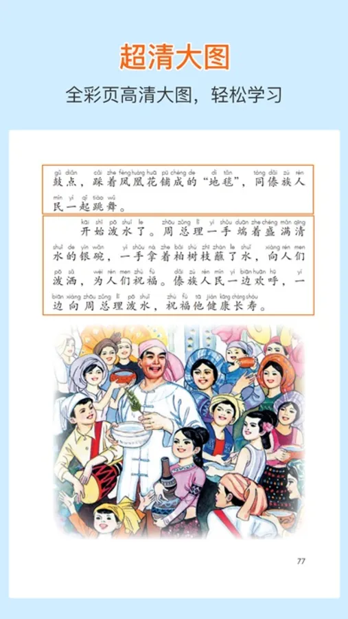 Covers the entire content of the textbook, allowing you to fully master the content of Pinyin letters, new words, words, sentences, texts, stories, poetry and other courses, so that children can learn with ease and happiness!