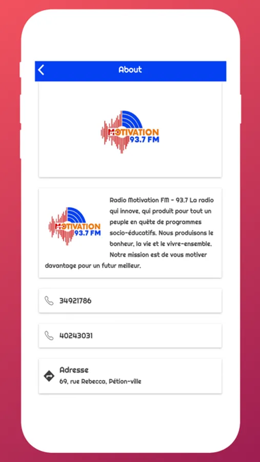 A Motivation FM, c’est la bonne humeur à travers la musique. C’est l’information non-stop, pour tout un peuple en quête de la bonne ambiance, d’un meilleur traitement de l’info et d’un divertissement pur.