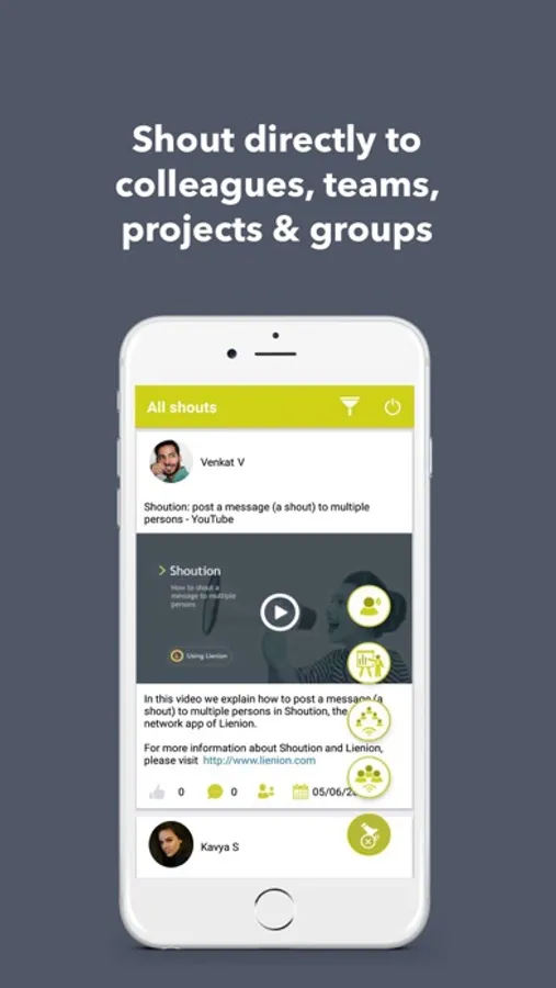 The Shoution app is the app of Shoution, the social network of Lienion. Shoution is not just a social network, it is a dedicated social network for your company, institution, administration or organisation. Shoution combines the flexibility and easiness of use of common social networks with the requirements and demands of a professional environment like e.g. confidentiality, control, asset protection, access rights, ...