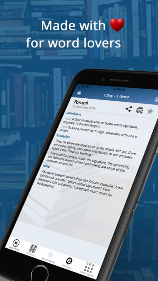 Following the "1 Day - 1 Word" format, adding new words each day, this app aims to improve your vocabulary. Relevant and useful words are added daily. Every word has Definitions and Examples.