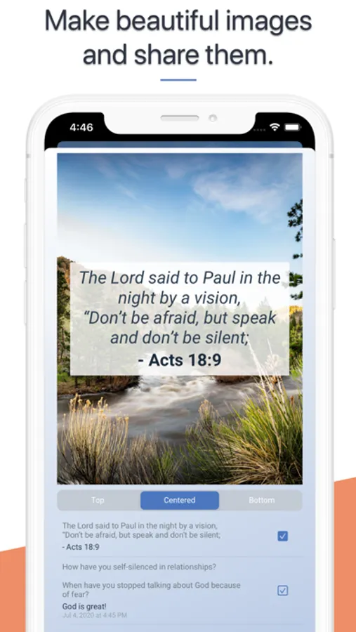 - Keep track of your thoughts by writing your own notes for any curated verse, devotion, or even any verse you want in the Bible.