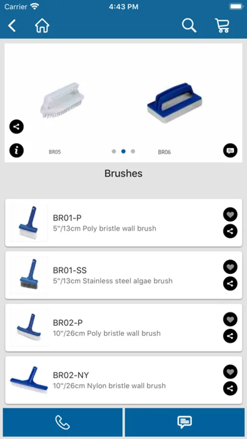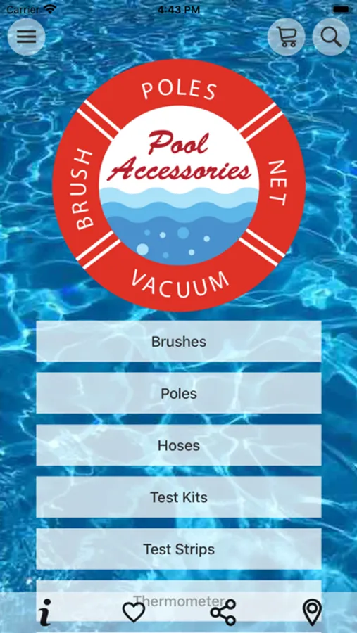 App list all kind of accessories used for pool and spa. User can easily consult us for any requirement and place an order.