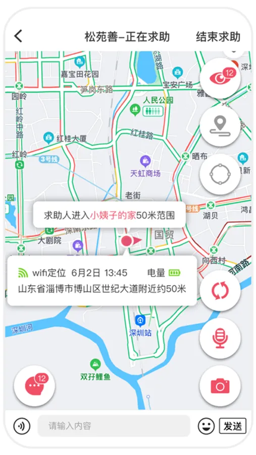 可与求助人实时聊天,方便交流,不在现场亦可安抚家人亲友情绪或协助脱离险情