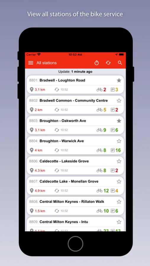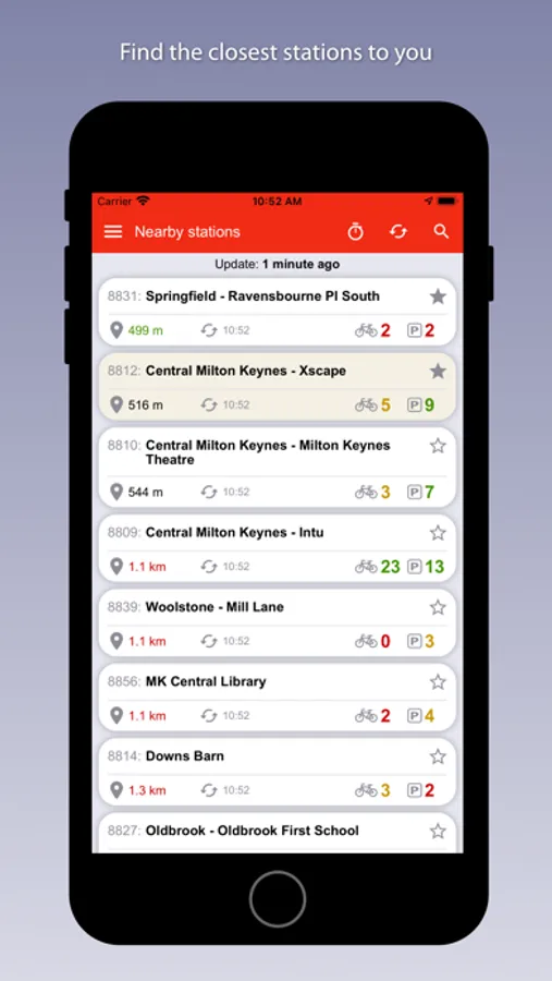 Application to view detailed information about the stations of the cycle rental service in Milton Keynes (MK).