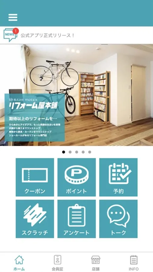 リフォームやリノベーションを検討中の方へ、耳寄りな情報をプッシュ通知で配信。ポイントをためると工事費に充当できます!アプリ登録で1000ptプレゼント。アンケート回答で500ptプレゼント。