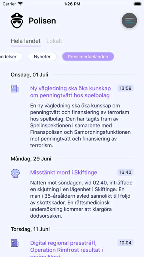Sverige Nytt hjälper dig att hålla koll på senaste nyheter och händelser. Välj en RSS kanal med aktuella dagens nyheter, lokala händelser och pressmeddelanden från källor så som Aftonbladet, Polisen, Placera, Computer Sweden, Mac World, Svenska Golfförbundet, Krisinformation, SCB, Skatteverket och många fler. Välj källor som du vill ha i din Newsstand och läs kortfattad information om ett urval av de utryckningar som dem gör.