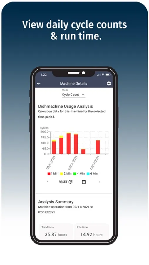 • Operating & Cleaning Cycles: Create better dishroom operations and procedures by analyzing dishmachine wash cycles and run-time over days, weeks and months in the easy-to-use graphs.