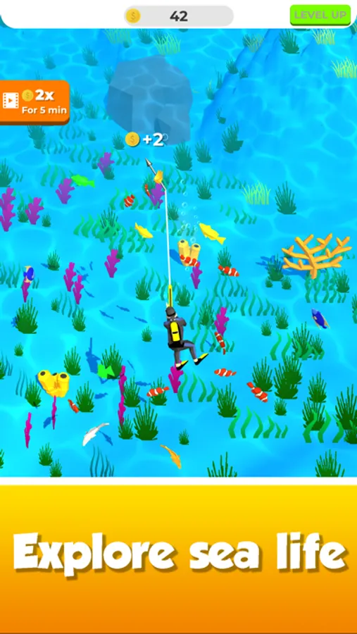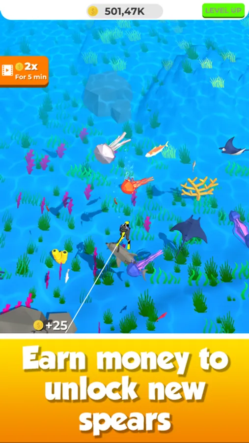 Welcome to Idle Spearfishing game! Idle Spearfishing - this is an amazing idle, tap, and clicker game with elements of hunting simulator. By using the diver-man and his speargun you can hunt the most different sea creatures in the world!