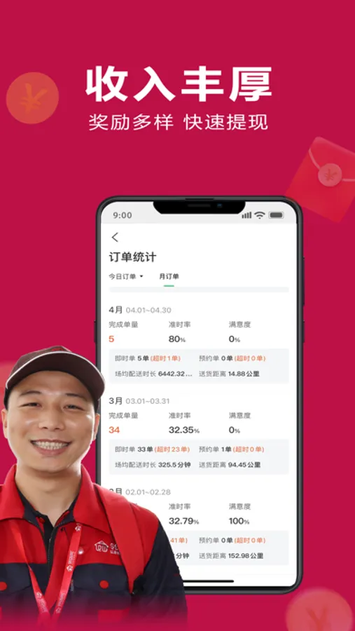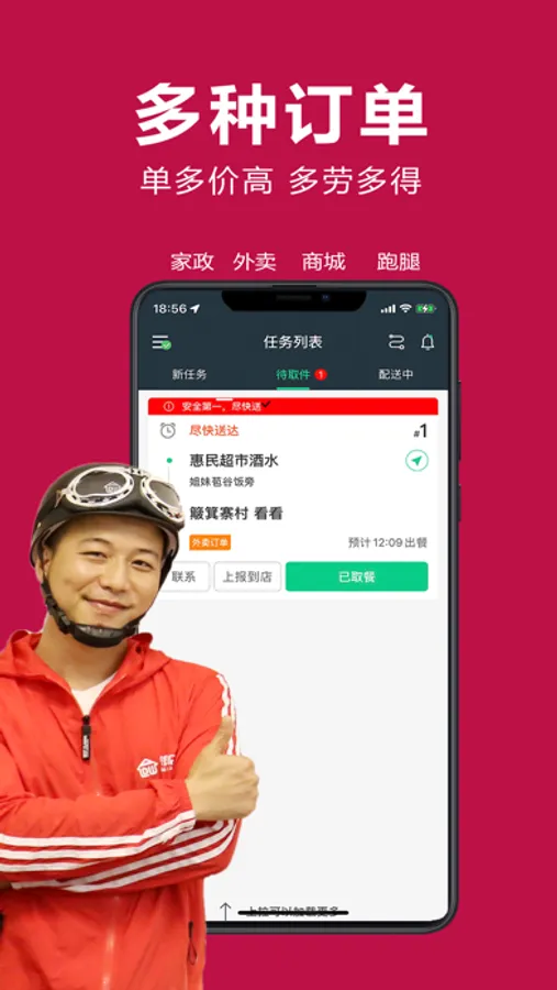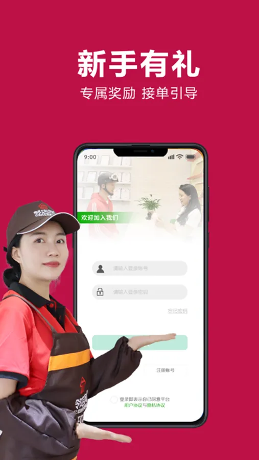 骑手接收外卖订单,新增接收商城订单,跑腿服务订单。市区 一小时内,全城送达:乡镇30分钟内送达。