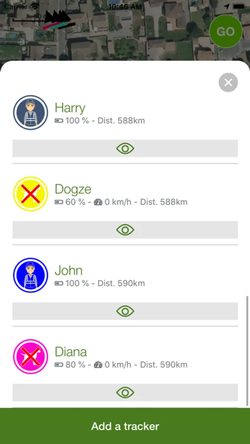 - View the main information of your tracker: battery level, speed, last position sent, direction, status (in motion, at stop, in standby, ...)
