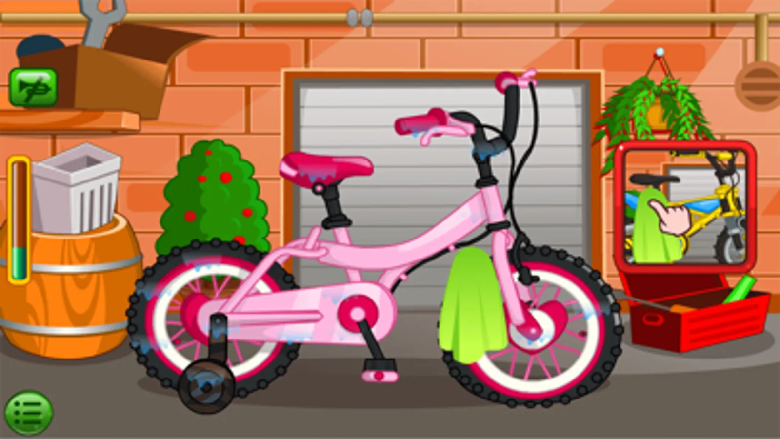 Riding a bike can be great fun for everyone to enjoy. With this bike cleaning game you can easily get your new bike prepared and fixed ready for your big day out at the park. You get to choose your very own bike to wash, rinse, and dry to make it all nice and clean when out and about. Repair the front tire and add a patch to the hole before pumping it up! Once done why not customize your bike to your personal favourite colours! By adding your very own custom basket to finish the look you can easily create the perfect bike that belongs to you.