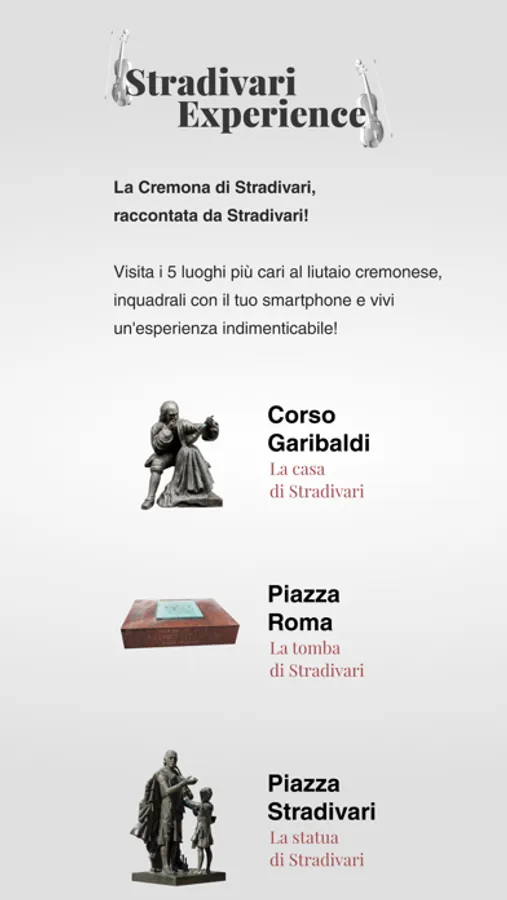 Visita i 4 luoghi più cari al liutaio cremonese, inquadrandoli con il tuo smartphone e vivi un'esperienza indimenticabile