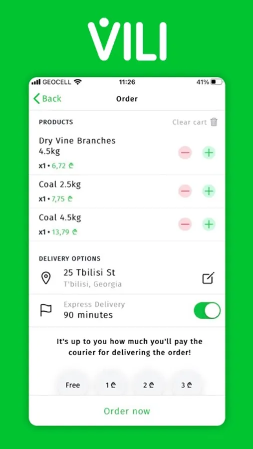 • As soon as possible – VILI team will deliver the order maximum in two hours, after receiving the order.