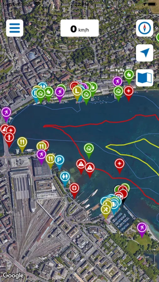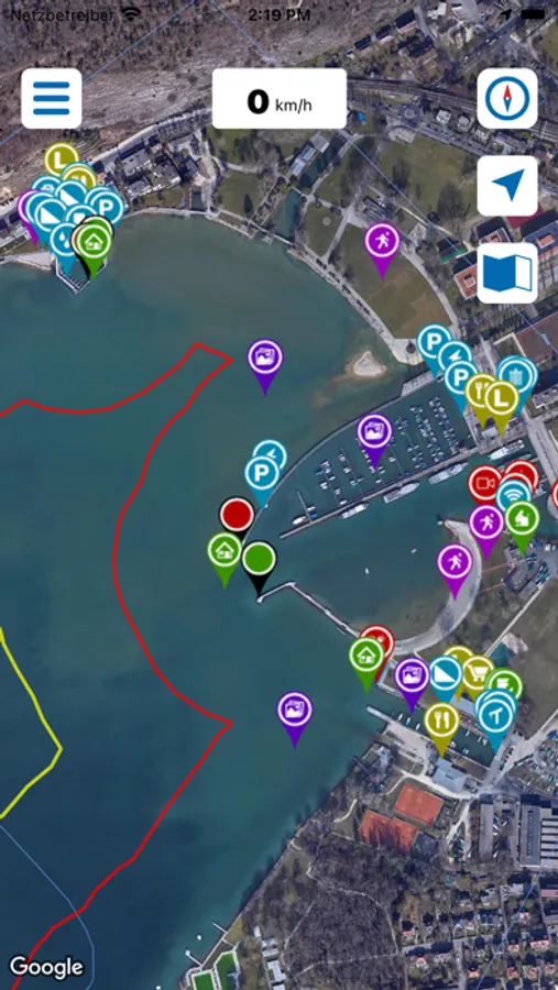 The app has all the important and useful information for water sports enthusiast. E.G.: Gas stations, restaurants, harbour offices, toilets, depth information, shore zones and waste disposal point are each marked on the spot with a pin and can be individually shown or hidden. The app is a harbour guide, a sea chart and a tourist guide all at once.