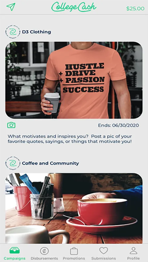 The College Cash App is a new way to earn money to pay off student loan debt. Search hundreds of campaign brands looking for fresh new content and submit photos to be a part of their next campaign. Once selected, they pay you for your content which is directly applied to your student loan debt. It's that simple!