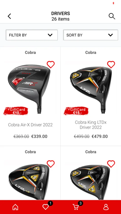 New golfgear on GolfDriver.nl It doesn't hurt to take stock: Is my golf equipment still to my liking? Or am I going shopping for something new? If so, then you are more than right here at GolfDriver.nl. Prices are at their lowest this time of the year and there is a lot of discounted, expanding collection of golf equipment for sale. Just compare with other shops :-) All our products are from A-brands, brand new and come with full guarantees!