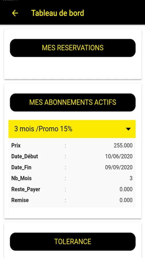 * Consulter le tableau de bord qui englobe les réservations encours les abonnements actifs et ses crédits actuels,