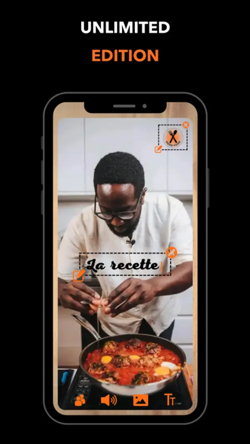 Edit your videos thanks to all the features available in the app: add images, videos, text, easily place your elements with one gesture, add transparency and much more...
