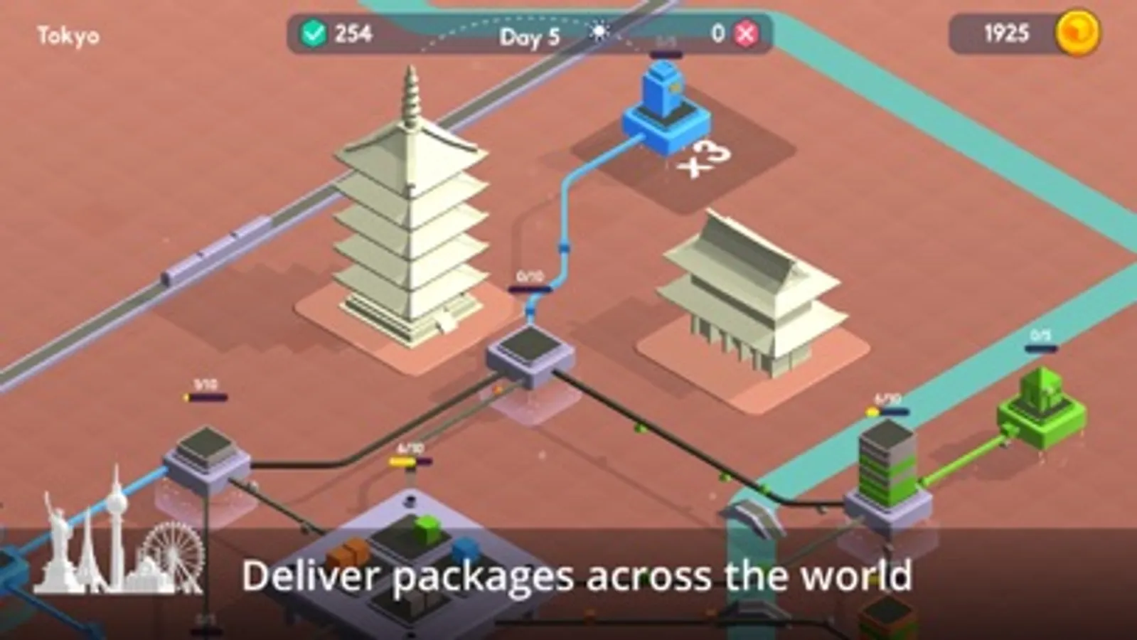 Package Inc. is a beautiful game about designing a delivery system for a growing city. Build a connection between different hubs and feed multiple destinations, like factories, police stations, cafes, libraries, boutiques, saloons, hotels, pizzerias, pet shops or schools.
