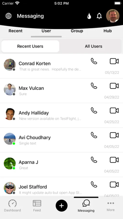 MESSAGING & CHAT – User to User and Group together with Hub Chat