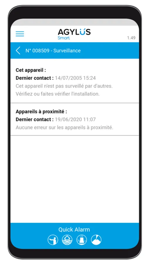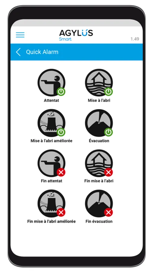 La fonction Quick Alarm vous permet d’agir depuis votre smartphone en cas de nécessité. Via Bluetooth, vous pourrez lancer l’alerte PPMS. En cas d’alarme déclenchée, l’appli réalise un envoi automatique de SMS vers les numéros préalablement enregistrés et transmet ainsi l’alerte à l’extérieur du bâtiment.