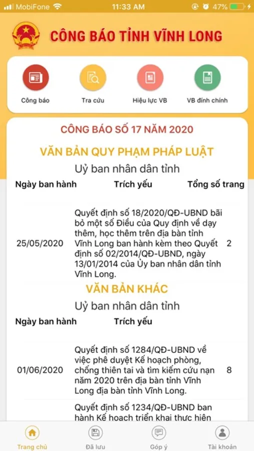 Ứng dụng Công báo tỉnh Vĩnh Long được phát triển bởi CÔNG TY TNHH PHẦN MỀM & DỊCH VỤ CÔNG NGHỆ THÔNG TIN LIINK với các tính năng: